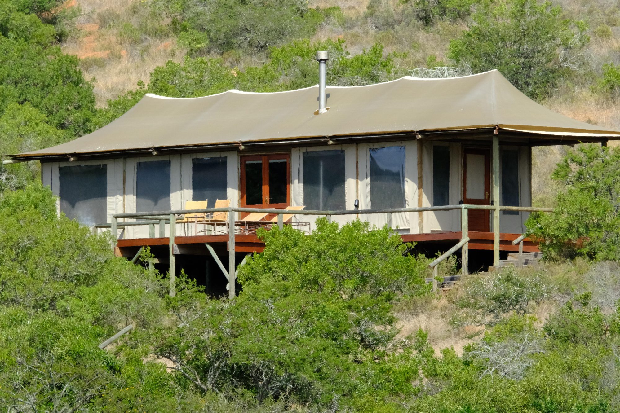 Nestled amidst indigenous trees and shrubs in a secluded valley, Bukela Game Lodge offers a romantic and tranquil safari retreat. Connected by a wooden walkway, the thatched Suites and Luxury Safari Tents provide an intimate and private nature experience.